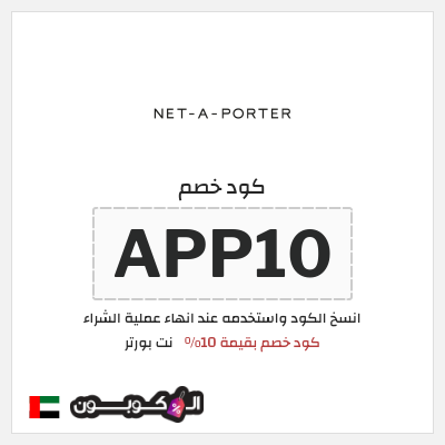 الآن تستطيع الحصول على أفضل الخصومات من خلال تطبيق كود خصم نت بورتريه الإمارات العربية: "APP10". وهو أحد أهم أكواد خصم Net-a-Porter، والذي يعطيك خصم يصل حتى 20% على أجود الملابس والأحذية والإكسسوارات الخاصة بالنساء.