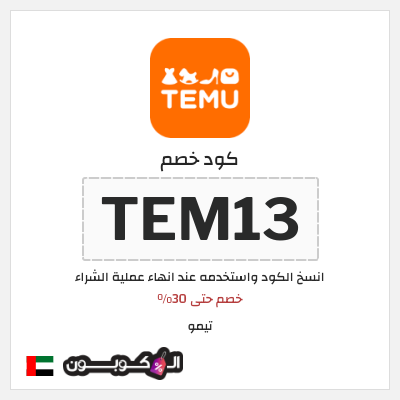 في هذه الصفحة نقدم لك أقوى اكواد خصم تيمو اليوم (19/12/2025) الفعالة والمجربة للعملاء الجدد والقدامى وبأعلى نسبة تخفيض وأكبر توفير يصل لأكثر من 30% على كافة منتجات TEMU. إنسخ أفضل كود خصم تيمو 2025: (TEM13) وألصقه عند الشراء عبر موقع وتطبيق TEMU للعملاء من الامارات.
